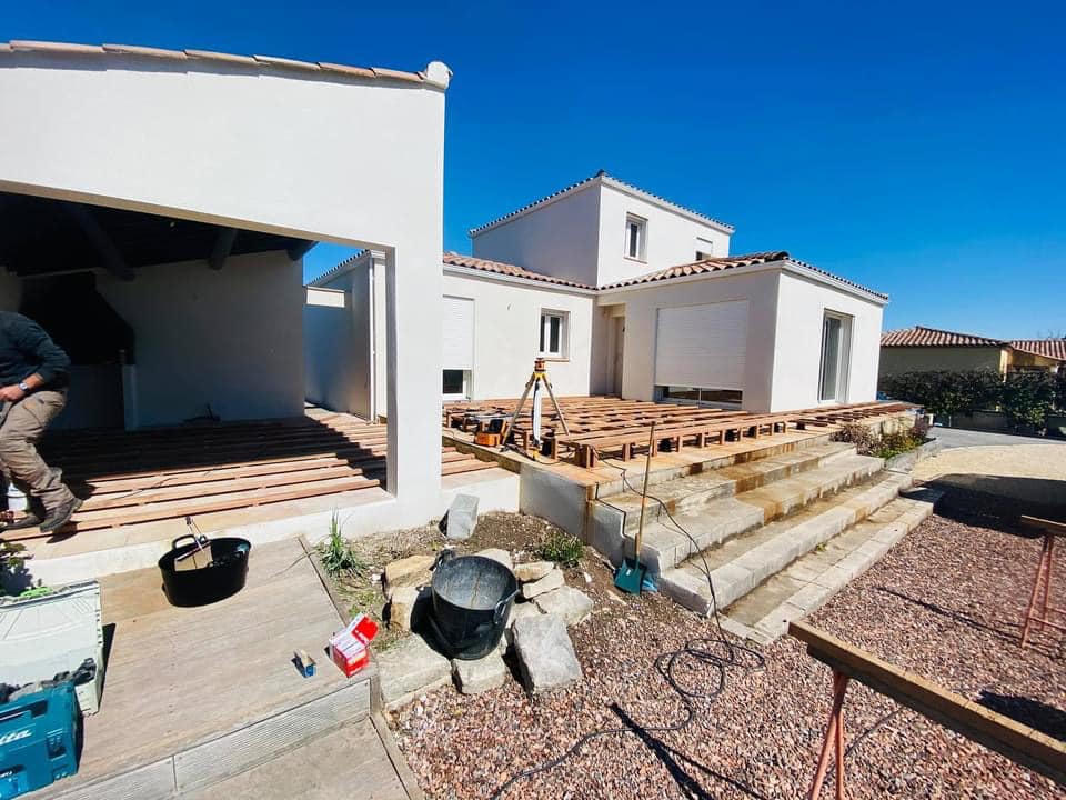 2 : Le premier niveau a été mis en place avec une précision laser, garantissant une terrasse parfaitement plane, stable et optimisée pour un rendu impeccable.